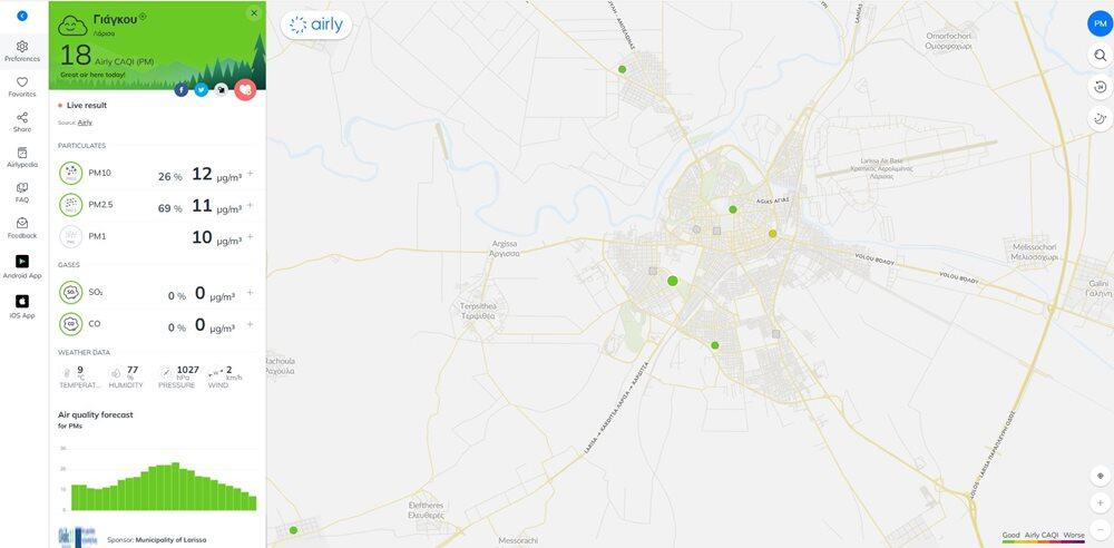 Οι αισθητήρες που θα τοποθετηθούν θα πρέπει να είναι συσκευές τύπου plug and play που θα μπορούν να εγκατασταθούν εύκολα σε οποιαδήποτε εγκατάσταση και θα απαιτούν μόνο πηγή ενέργειας και εμβέλεια GSM ή Wifi ή LoRa. Οι αισθητήρες θα πρέπει να μετρούν τη συγκέντρωση των αιωρούμενων σωματιδίων (PM1, PM2,5 και PM10) και τη θερμοκρασία, την υγρασία και την πίεση. Τα δεδομένα μετρήσεων που σχετίζονται με την ποιότητα του αέρα και τις καιρικές παραμέτρους θα υπολογίζονται κατά μέσο όρο και θα αποστέλλονται σε τακτά διαστήματα των 5 λεπτών. Οι αισθητήρες αέρα θα χρησιμοποιούν δίκτυα GSM για μετάδοση δεδομένων και για απομακρυσμένες ενημερώσεις και διαγνωστικούς σκοπούς. Με τη χρήση ενσωματωμένης κάρτας SIM θα είναι δυνατή η χρήση του αισθητήρα χωρίς επίβλεψη. Οι αισθητήρες θα τροφοδοτούνται από έναν παρεχόμενο προσαρμογέα ρεύματος USB. Το περίβλημα του αισθητήρα θα είναι κατασκευασμένο από ανοξείδωτο χάλυβα, εξασφαλίζοντας απρόσκοπτη απόδοση ακόμα και στις πιο σκληρές συνθήκες. Οι αισθητήρες αέρα θα συνδέονται με πηγή ρεύματος για την αδιάλειπτη μετάδοση δεδομένων.