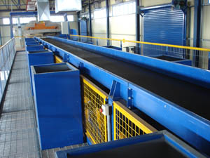 - Τα μη διερχόμενα από το κόσκινο υλικά θα μεταφέρονται στον κατ’εξοχήν τμήμα επεξεργασίας, που είναι η μεταφορική ταινία. Εκατέρωθεν της ταινίας διαλογείς θα διαχωρίζουν τα υλικά, ανάλογα με το είδος και την ποιότητα τους.